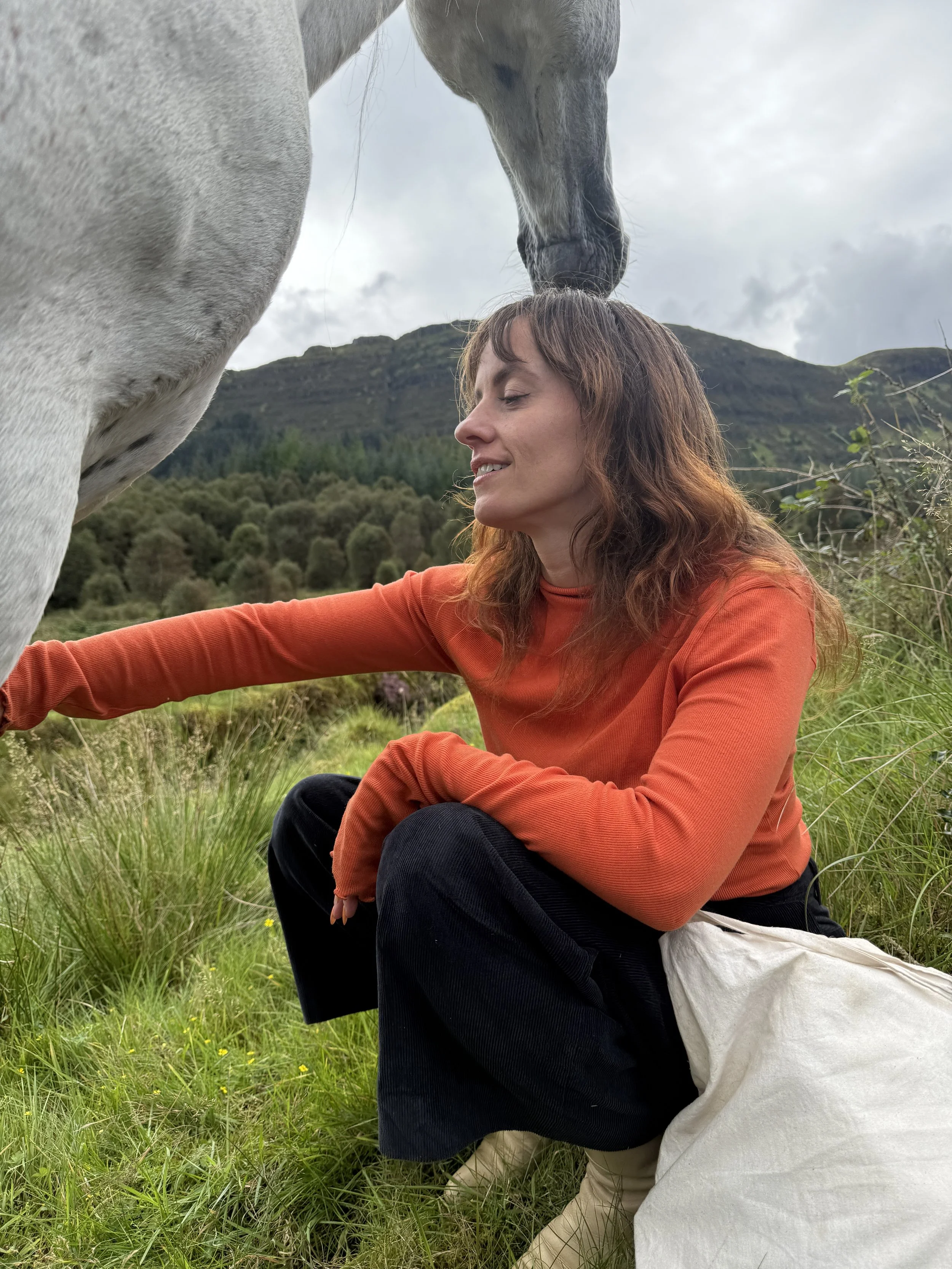 In Morvern’s forests and pastures, our ways of working found each other. Kathryn experienced Lizzie’s soft power - the patient, embodied listening that guides her life and work. Lizzie experienced Kathryn’s depth, mythic insight, and tender courage around emotion. What emerged between us was a shared devotion to what we call fierce gentleness: a wild femininity that is powerful without force and soft without losing strength.