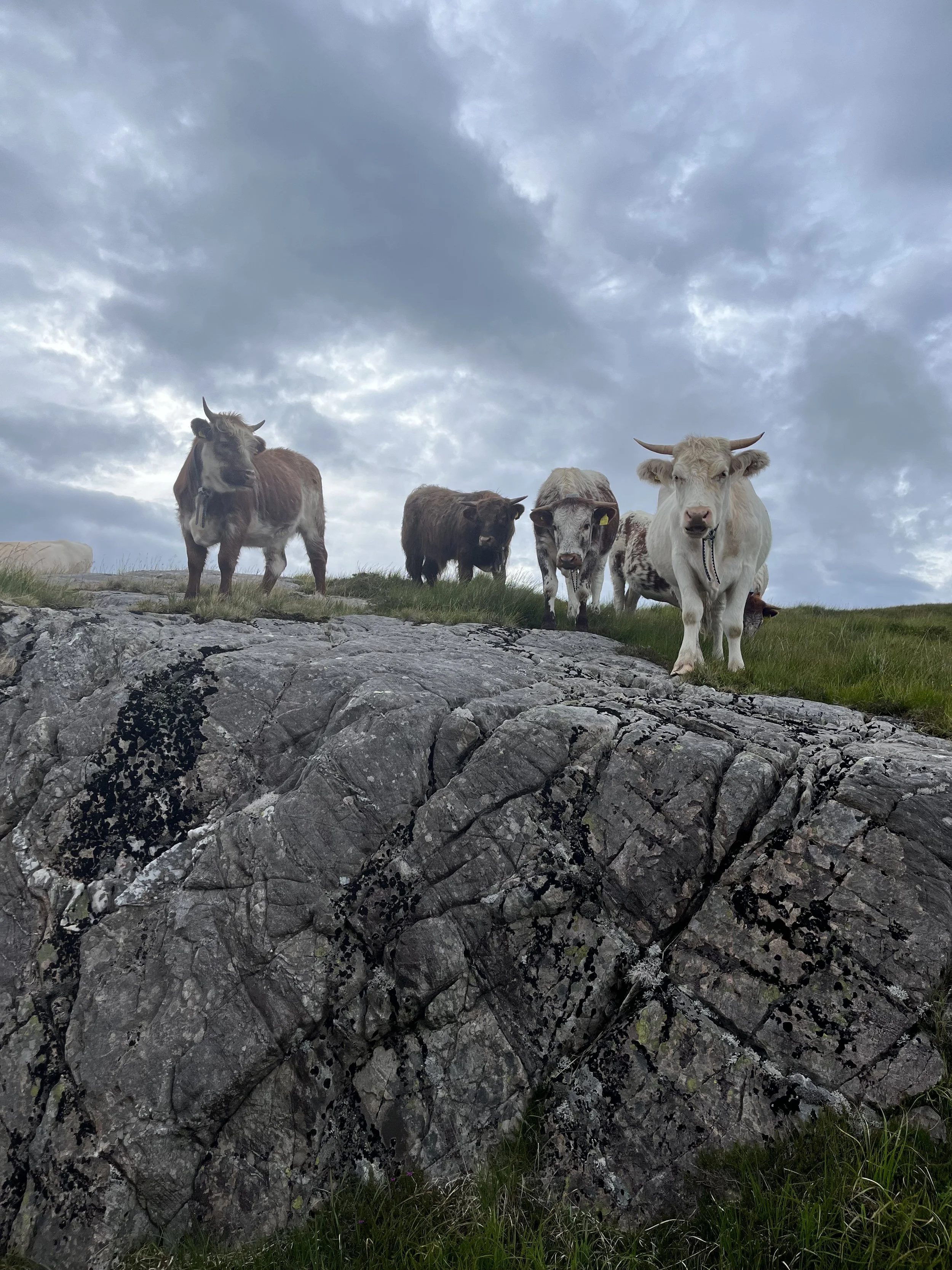 Our herd of seven cattle - a mix of mothers, daughters, and a few young newcomers - live here as partners in land regeneration. Their grazing restores soil and supports the health of the wider ecosystem.